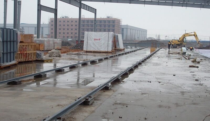 2009 Lafarge, China. New Gypsum plasterboard factory. Installation of dryer support rails