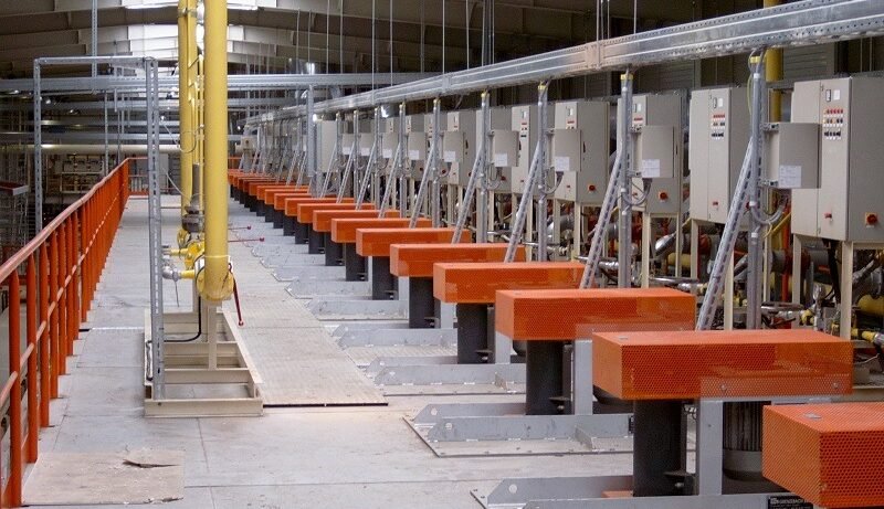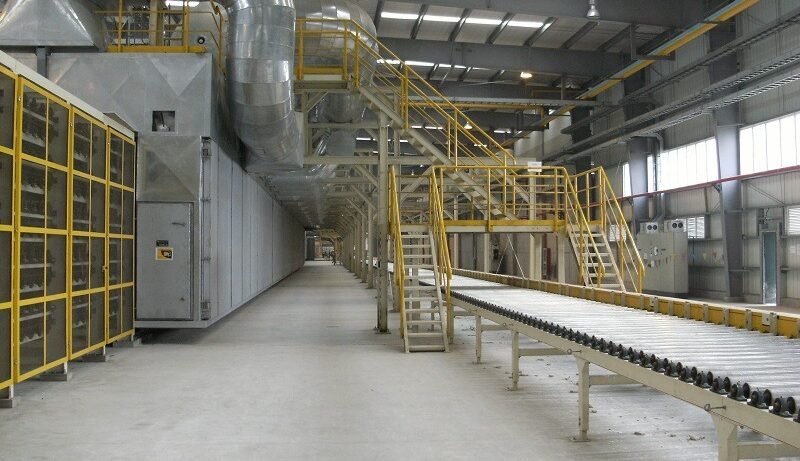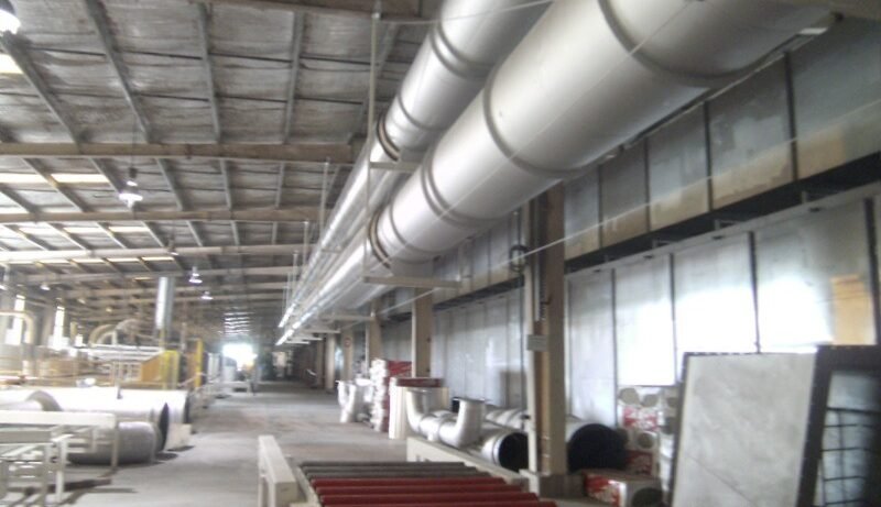 2004-2005 BPB Plc (Saint Gobain), Romania. New Gypsum plasterboard factory. Dryer fans and gas burners