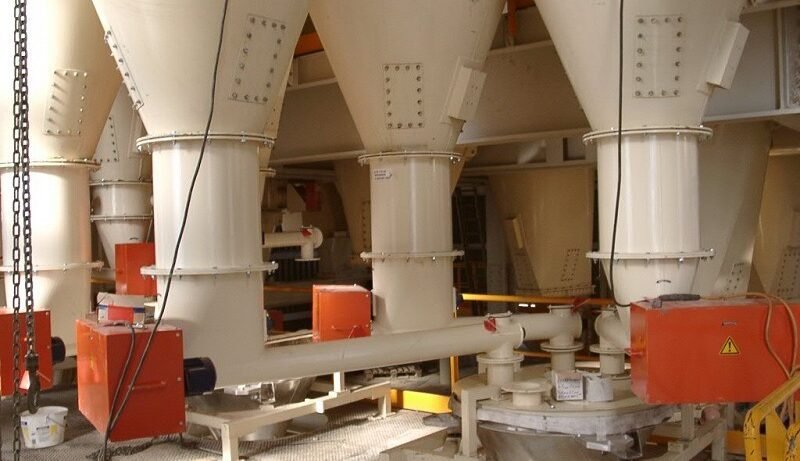 2000-2002 BPB Italia (Saint Gobain) New Gypsum plaster & Plasterboard factory. Plaster mill during construction
